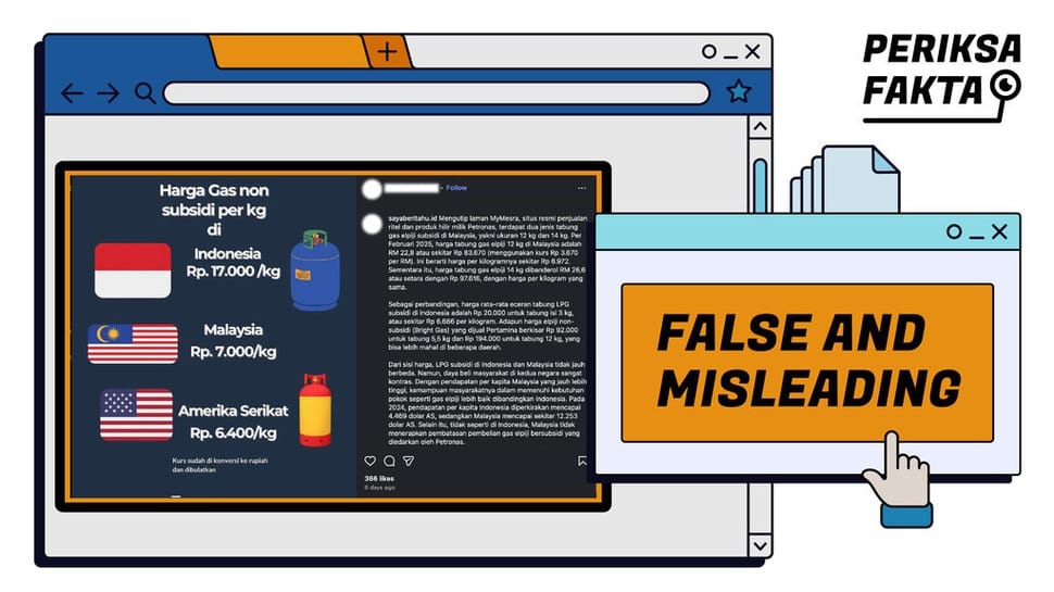 Berdasarkan hasil penelusuran, infografis yang menyebut harga LPG non-subsidi di Indonesia lebih mahal dibandingkan Malaysia dan Amerika Serikat adalah salah dan menyesatkan (false and misleading).