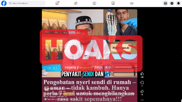 Verifikasi Tempo menyimpulkan bahwa klim video promosikan obat nyeri sendi adalah klaim keliru. Video merupakan hasil rekayasa menggunakan generated-AI audio.