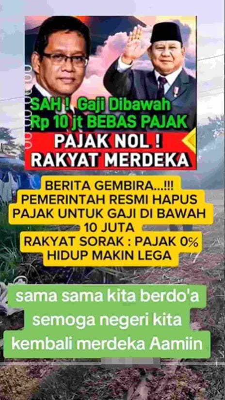 (GFD-2025-29503) Pemerintah Hapus Pajak Seluruh Pekerja Bergaji di Bawah 10 Juta?
