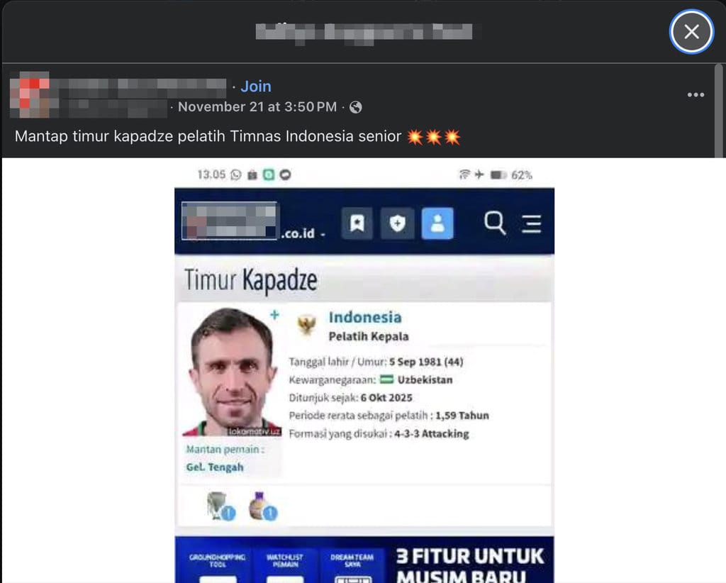 (GFD-2025-30670) Cek fakta, Timur Kapadze jadi pelatih Timnas Indonesia
