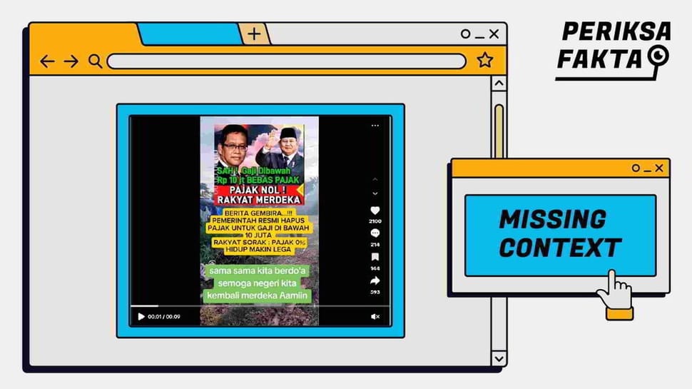 Berdasarkan penelusuran fakta yang sudah dilakukan, narasi soal pemerintah resmi menghapus pajak penghasilan bagi pekerja dengan gaji di bawah Rp10 juta bersifat missing context (menyesatkan tanpa tambahan keterangan).