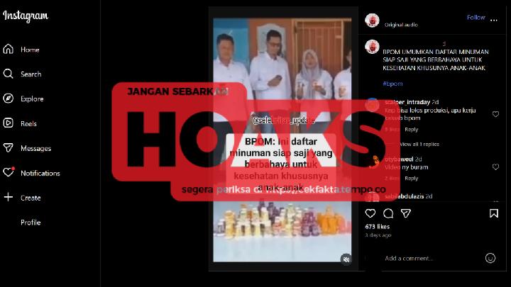SEBUAH video dengan klaim bahwa Badan Pengawas Obat dan Makanan (BPOM) merazia minuman siap saji dalam kemasan beredar di sejumlah media sosial. Tempo menemukan konten tersebut beredar di Facebook [arsip], Instagram, Threads, YouTube, TikTok, dan X pada pertengahan November 2025.