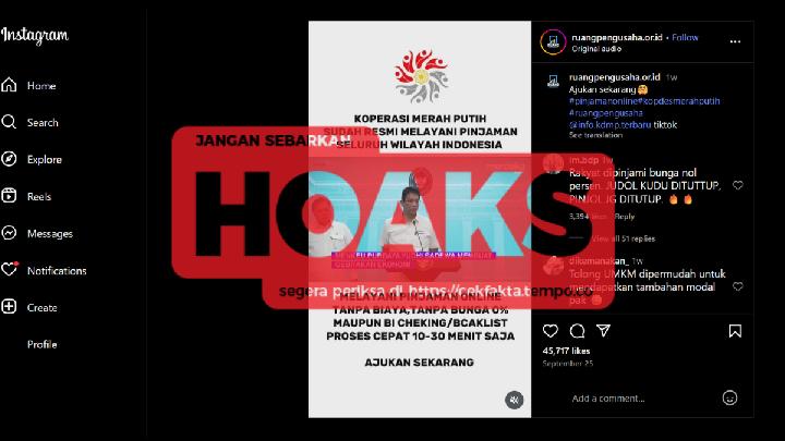 SEBUAH video beredar di Instagram [arsip], TikTok dan YouTube, dengan narasi bahwa Menteri Keuangan Purbaya Yudhi Sadewa membuka layanan pinjaman online melalui Koperasi Desa Merah Putih.