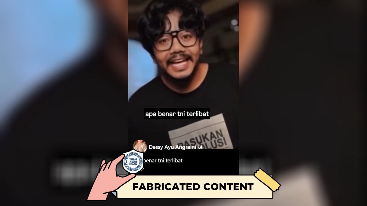 Beredar video [arsip] yang diunggah oleh akun Facebook “Dessy Ayu Anggraini” pada Rabu (10/9/2025) berisikan video Ferry Irwandi mengklaim bahwa kerusuhan yang terjadi belakangan ini dilakukan oleh TNI. Berikut narasinya: