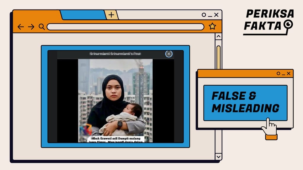 Foto yang beredar di media sosial bukan merupakan wajah Erawati yang menggendong bayi yang dia selamatkan dari kejadian kebakaran di Hong Kong.