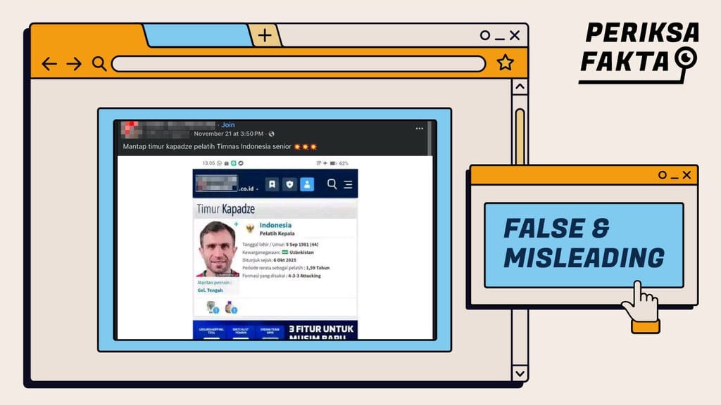 Hasil penelusuran menunjukkan bahwa tangkapan layar yang mengklaim Timur Kapadze menjadi pelatih Timnas Indonesia adalah salah dan menyesatkan (false and misleading).