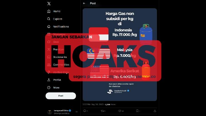 Tempo memverifikasi narasi itu dengan membandingkan informasi dari sumber kredibel. Hasilnya, infografis tersebut tidak sesuai dengan data resmi pemerintah Indonesia, Malaysia, dan Amerika Serikat. Perbedaan harga LPG non-subsidi di tiap negara juga dipengaruhi faktor geografis dan tingkat permintaan.