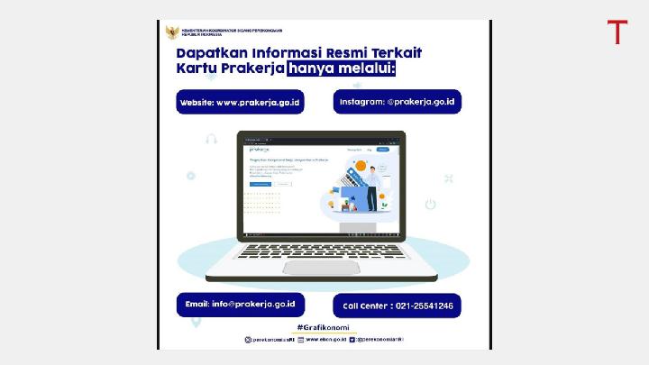 Informasi resmi Kartu Prakerja hanya laman www.prakerja.go.id, Instagram @prakerja.go.id, email [email protected] dan call center di nomor 021-25541246.