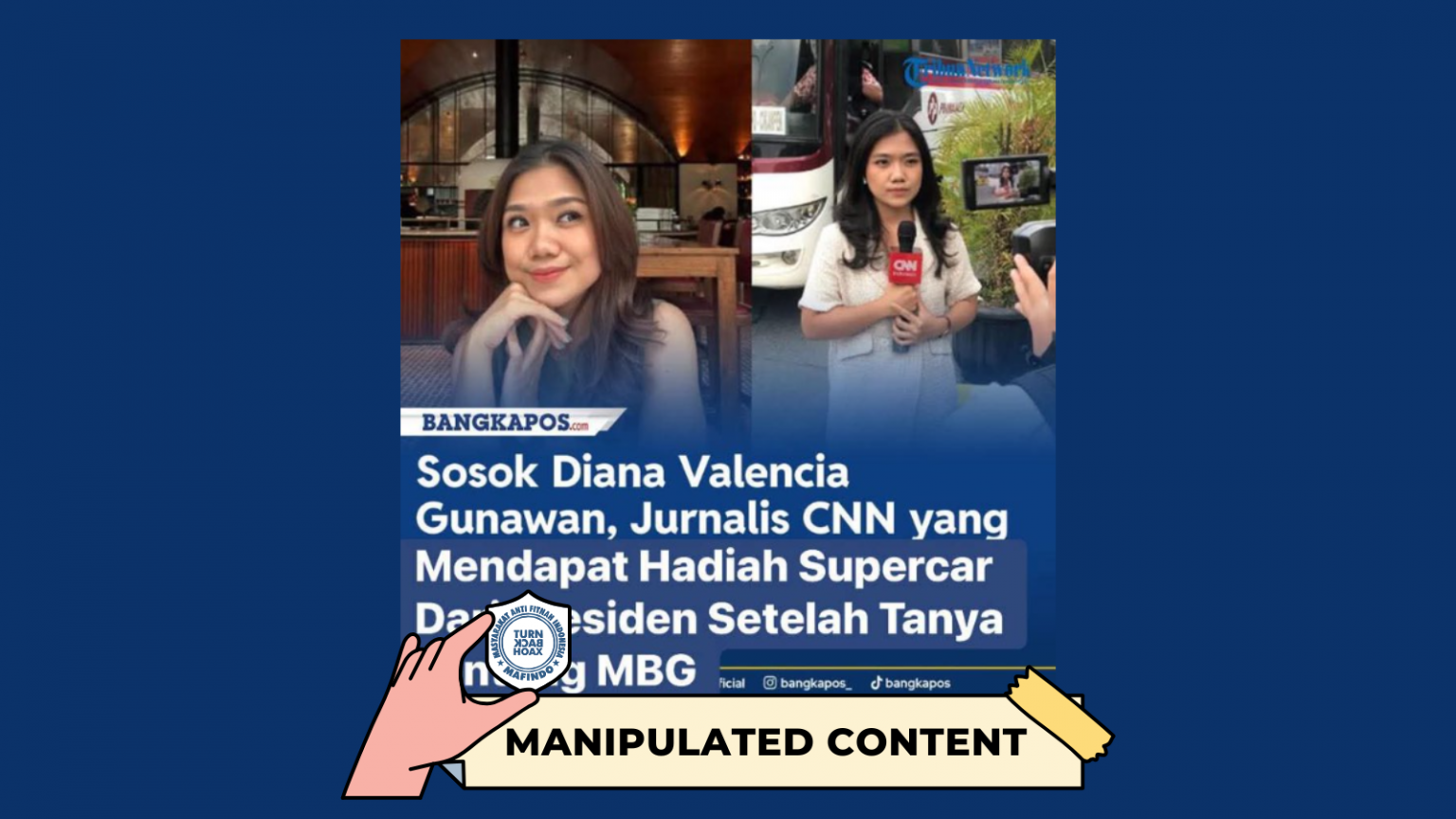 Unggahan berisi klaim “jurnalis CNN dapat hadiah supercar dari Prabowo setelah tanya tentang MBG” merupakan konten yang dimanipulasi (manipulated content).