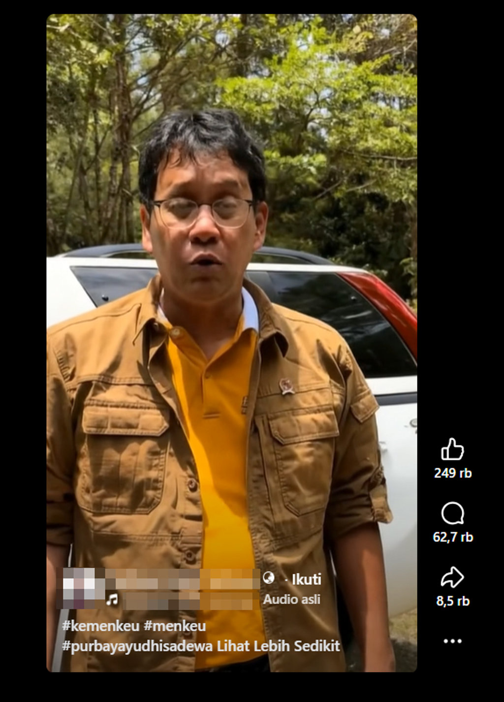 Untuk memverifikasi kebenaran klaim tersebut, pertama-tama Tirto menelusuri akun pengunggah video. Akun tersebut memiliki 319 ribu pengikut dan sering membagikan informasi terkait kegiatan Purbaya. Kementerian Keuangan (Kemenkeu) telah menegaskan bahwa akun resmi Menteri Keuangan Purbaya hanya ada di Instagram dan TikTok dengan nama @menkeuri, bukan di Facebook.