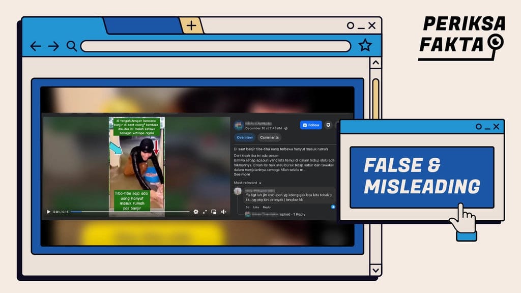 Hasil penelusuran menunjukkan bahwa video yang memperlihatkan seorang perempuan mengambil uang yang hanyut di tengah banjir bandang di Sumatera adalah tidak benar dan menyesatkan (false and misleading).