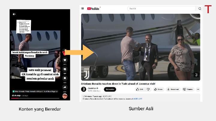 Video berdurasi 37 detik ini sebenarnya adalah peristiwa kedatangan Ronaldo di Bandara Caselle, Kota Turin, Italia pada 15 Juli 2018. Kala itu, pemain sepakbola asal Portugal itu baru saja bergabung dengan klub Juventus.Â