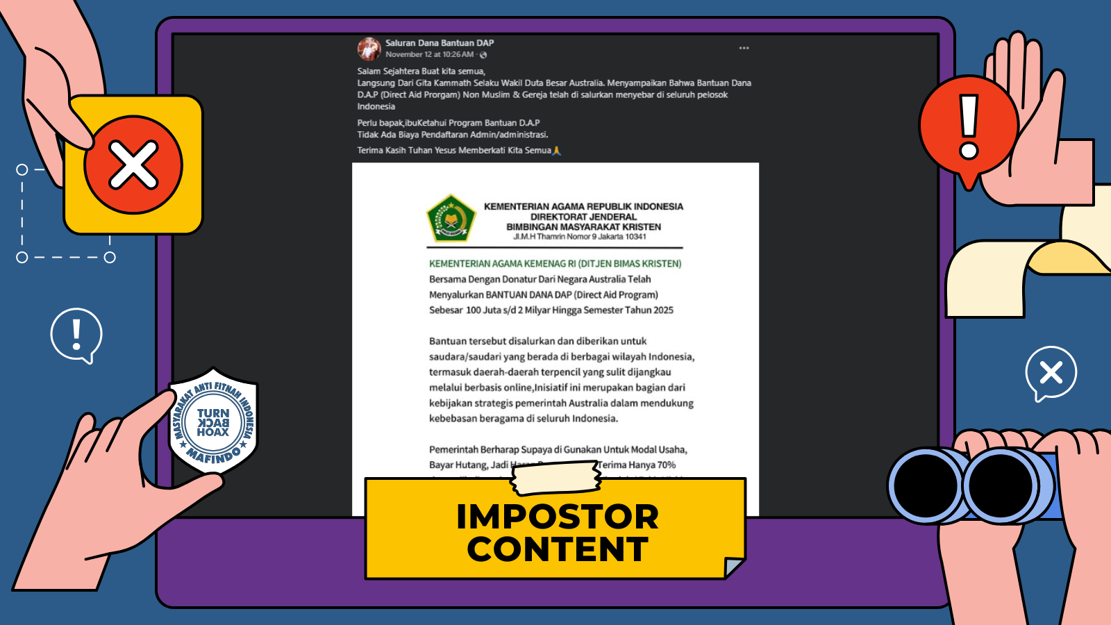 Pada Rabu (12/11/2025) akun Facebook “Saluran Dana Bantuan DAP” membagikan tautan [arsip] disertai narasi: