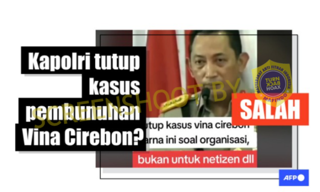 Beredar sebuah video di Snack Video yang melihatkan jika Kapolri, Jenderal Listyo Sigit Prabowo, telah memerintahkan kepada seluruh anak buahnya untuk menutup kasus pembunuhan Vina Cirebon karena menyangkut persoalan organisasi.