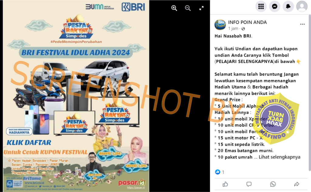 Dengan demikian, program BRI Festival Idul Adha 2024 adalah tidak benar dengan kategori Konten Tiruan.