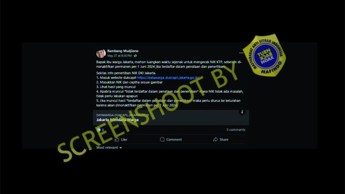 (GFD-2024-20250) [KLARIFIKASI] Penertiban NIK di Jakarta Dilakukan Bertahap