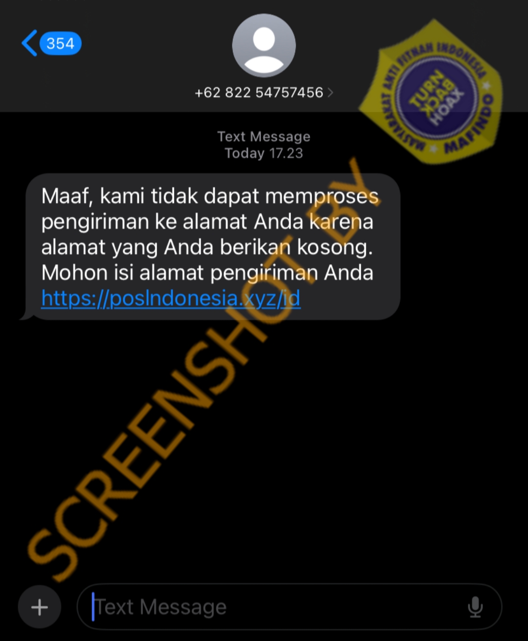 Menyadur dari unggahan resmi milik Facebook Indonesia, pesan melalui SMS yang berisi tautan atas nama Pos Indonesia, merupakan pesan dan tautan palsu.