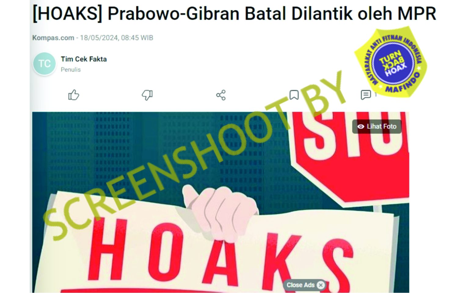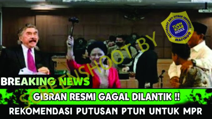 Namun, setelah disimak tidak ditemukan informasi mengenai Gibran batal dilantik menjadi wapres. Narator hanya membacakan artikel yang terbitkan oleh Sindonews yang berjudul โ Gugatan PDIP ke PTUN Bisa Jadi Pertimbangan MPR Tidak Lantik Prabowo-Gibranโ.