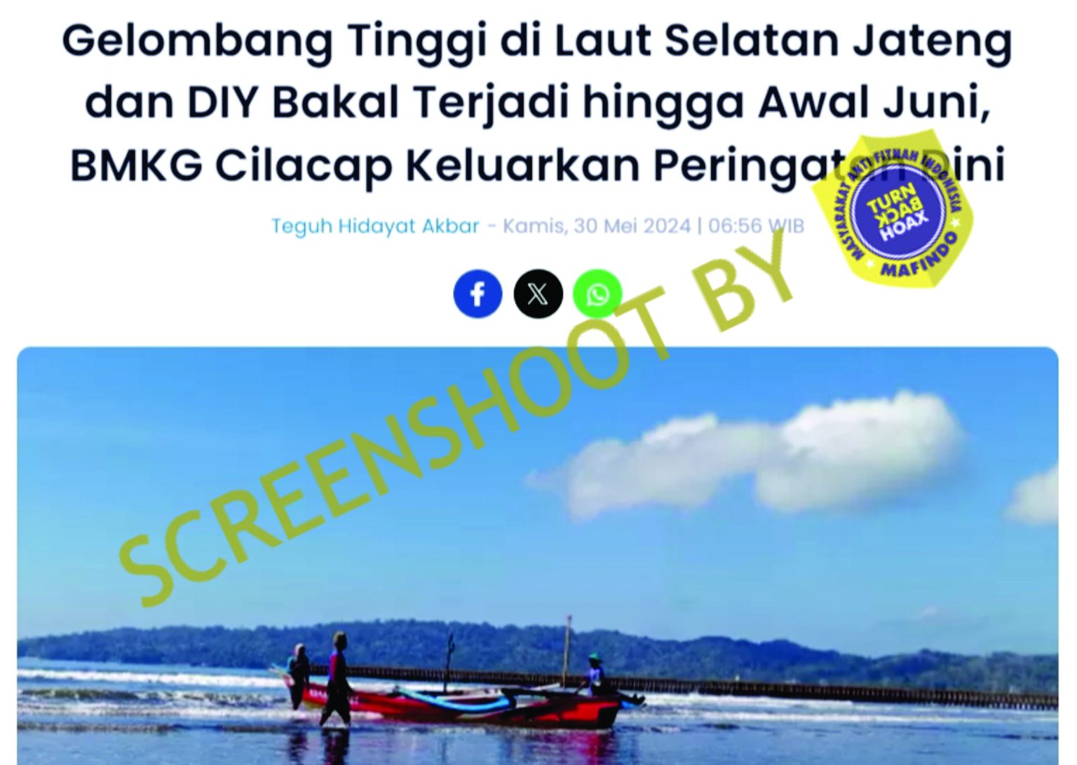 Namun, setelah disimak dan dilakukan pencarian di Google ternyata narator hanya membacakan ulang sebuah artikel berjudul “Gelombang Tinggi di Laut Selatan Jateng dan DIY Bakal Terjadi hingga Awal Juni, BMKG Cilacap Keluarkan Peringatan Dini” yang diterbitkan oleh Suara Merdeka.