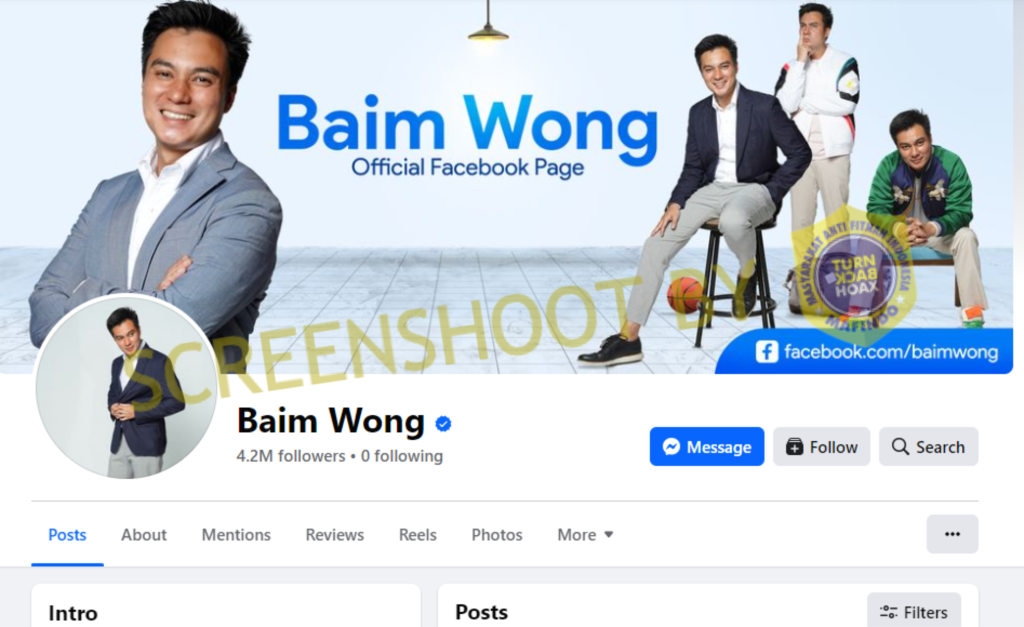 Namun, akun yang menyeret nama Baim Wong dan Paula tersebut hanya merupakan akun tiruan. Diketahui Facebook resmi โBaim Wongโ sudah mendapatkan verifikasi centang biru sebagai tanda bahwa akun tersebut memang dipegang oleh Baim.