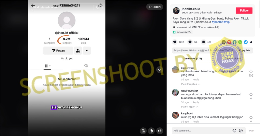 (GFD-2024-19369) [SALAH] Akun Tiktok Tiruan Pengusaha Jhon LBF โ@jhonlbf.berbagi14โ