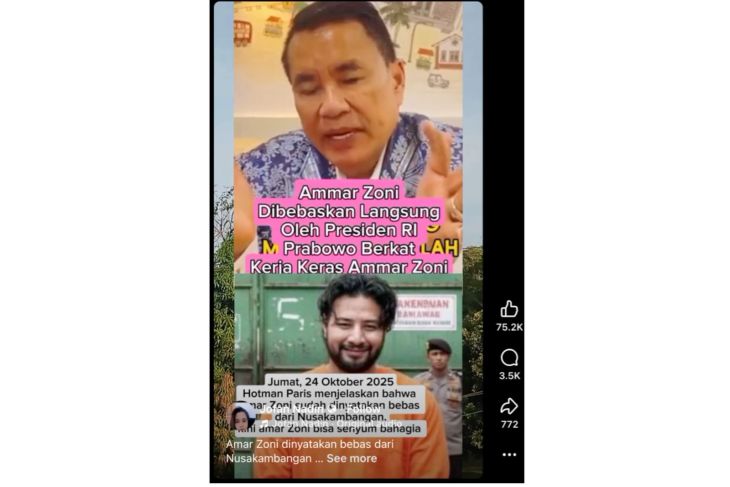 Video itu juga menarasikan bahwa Presiden Prabowo Subianto secara langsung membebaskan Ammar Zoni dari penjara.