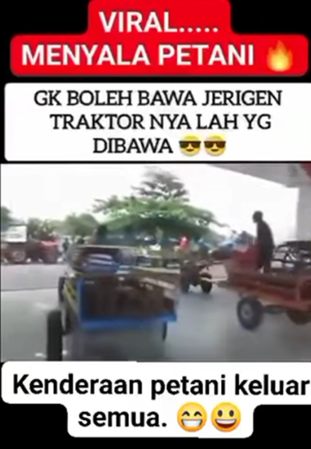 “SPBU Jadi Pameran Traktor! Gara-gara aturan larangan jerigen, petani kelimpungan isi BBM ⛽. September 2025 – Pemerintah lewat Perpres 191/2014 & Peraturan BPH Migas No. 2/2023 melarang pembelian BBM subsidi (Pertalite & Solar) menggunakan jerigen 🛢️, kecuali dengan surat rekomendasi resmi dari pemda. Tujuannya memang baik ➡️ biar BBM subsidi tidak disalahgunakan untuk ditimbun atau dijual lagi. Tapi di lapangan, aturan ini bikin repot petani & nelayan,” sebut akun Aceh Wolrd Timer.