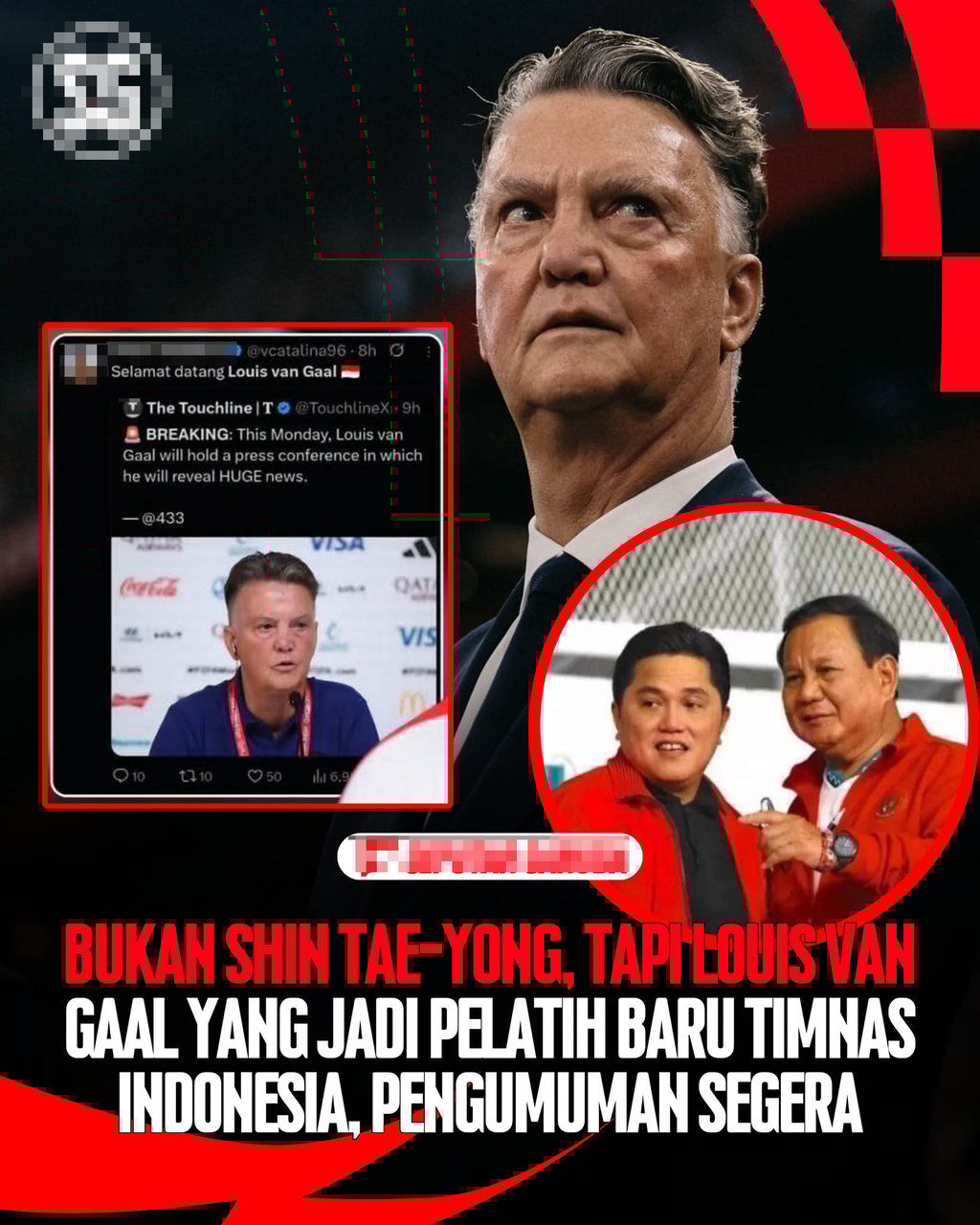 “Breaking, Senin ini (red-20/10/2025), mantan pelatih kepala Louis van Gaal akan menggelar konferensi pers, ia akan membawa berita besar. Apa yang akan ia sampaikan?,” tulis akun IG resmi @433nl.