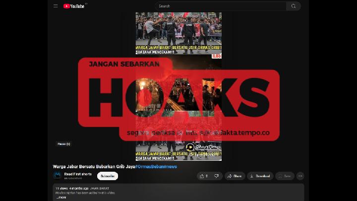 Verifikasi Tempo menyimpulkan, klaim video bentrokan warga Jabar dengan ormas GRIB di Bogor adalah keliru. Video itu hasil rekayasa AI dan hanya dikaitkan dengan sejumlah konflik lain yang pernah melibatkan GRIB di Jawa Barat.