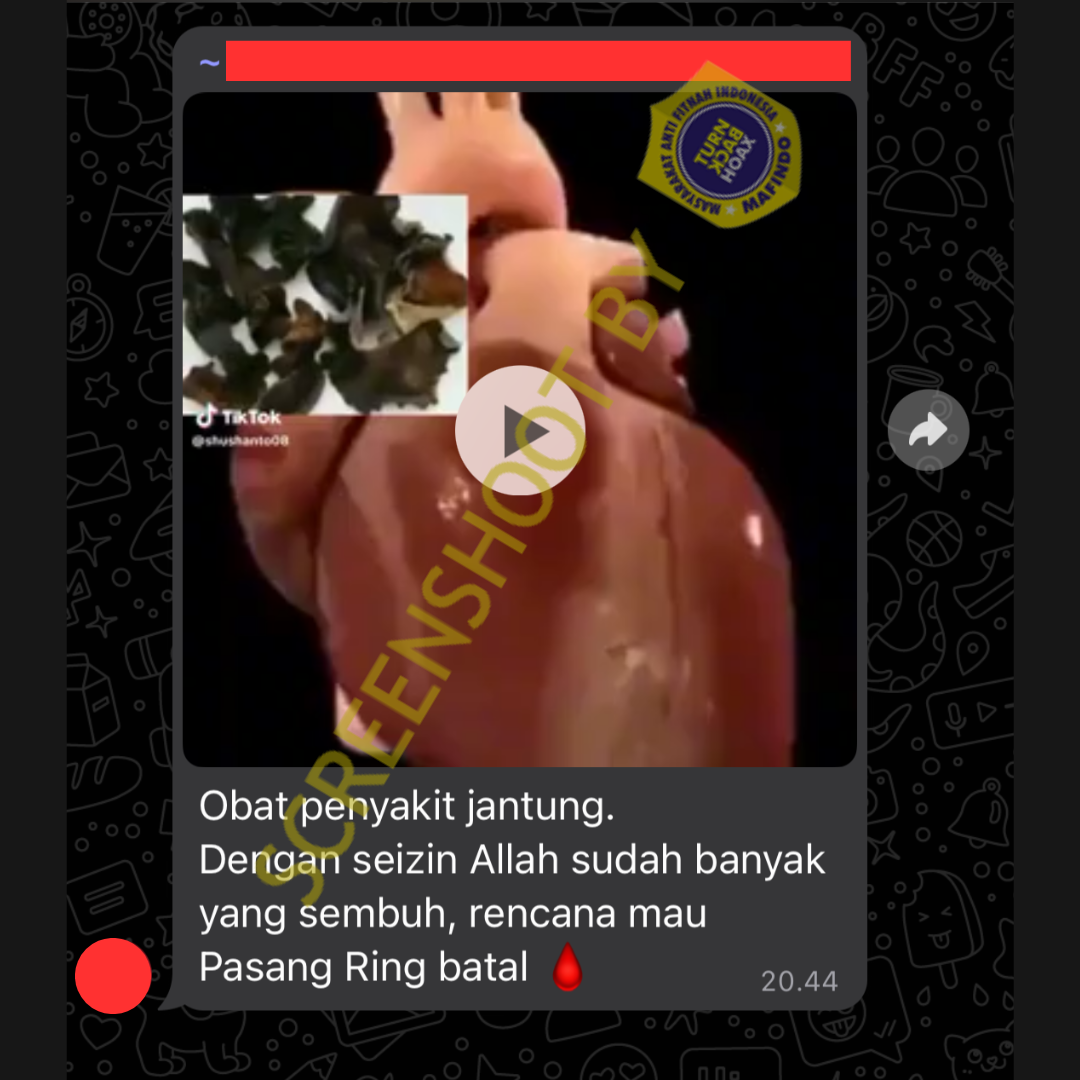 Beredar pesan berantai melalui media sosial WhatsApp yang melampirkan video dengan klaim ramuan bawang putih dapat membuat pasien jantung tidak perlu memasang ring jantung. Pesan tersebut melampirkan sebuah video yang menyebutkan bahwa campuran antara satu siung bawang putih dan satu rimpang jahe dapat mengobati penyakit jantung.