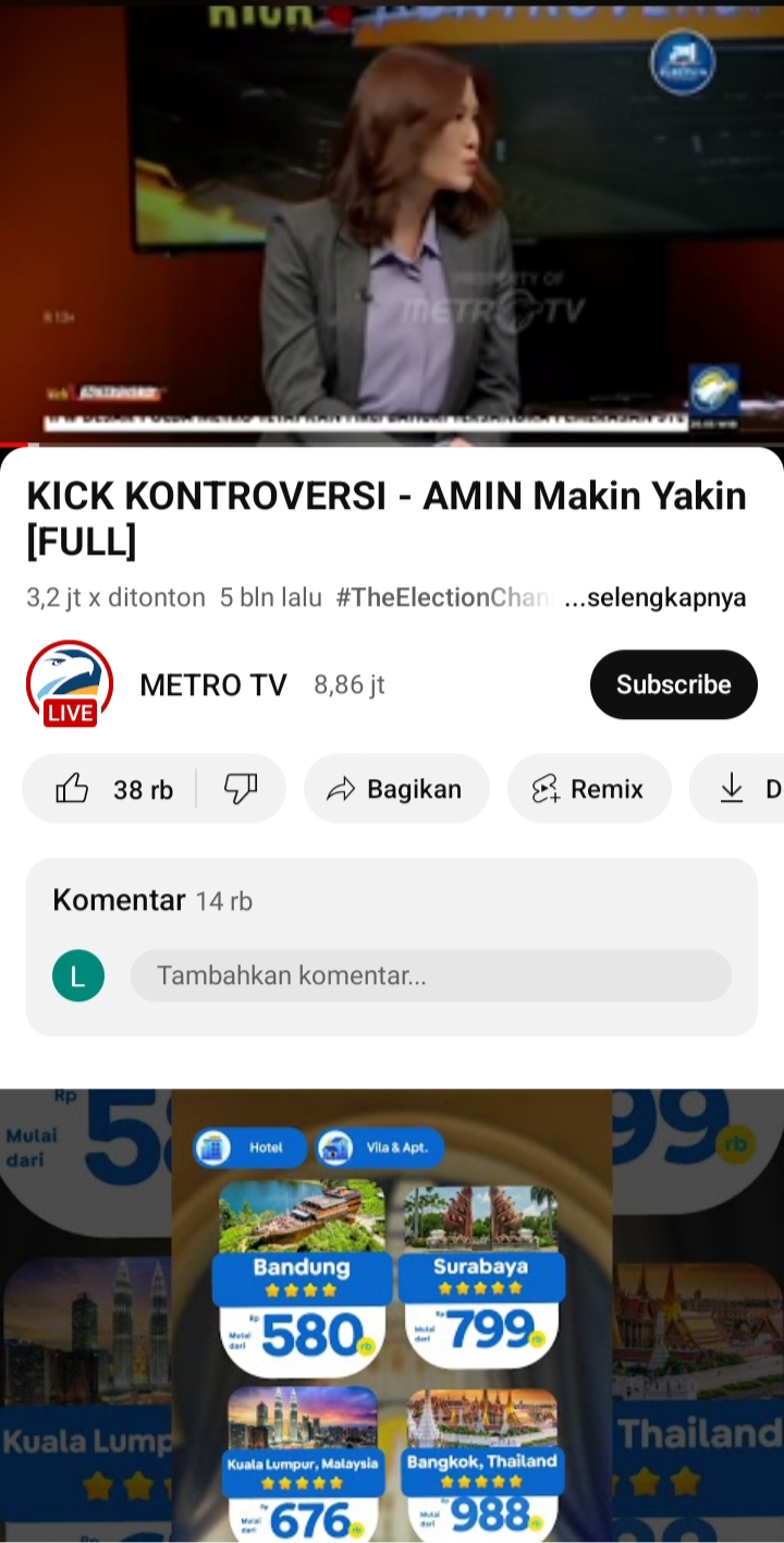 Setelah dilakukan penelusuran, faktanya unggahan video berdurasi 59 detik tersebut sangat identik dengan unggahan video milik akun @METRO TV dengan judul “KICK KONTROVERSI – AMIN MAKIN YAKIN [FULL]” yang diunggah pada 19 Oktober 2024.