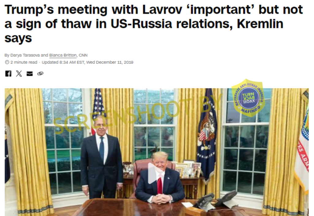 Namun, setelah dilakukan sumber asli foto tersebut, ditemukan hasil temuan jika foto tersebut berasal dari artikel CNN berjudul, “Trump’s meeting with Lavrov ‘important’ but not a sign of thaw in US-Russia relations, Kremlin says” yang diunggah pada 11 Desember 2019 lalu.