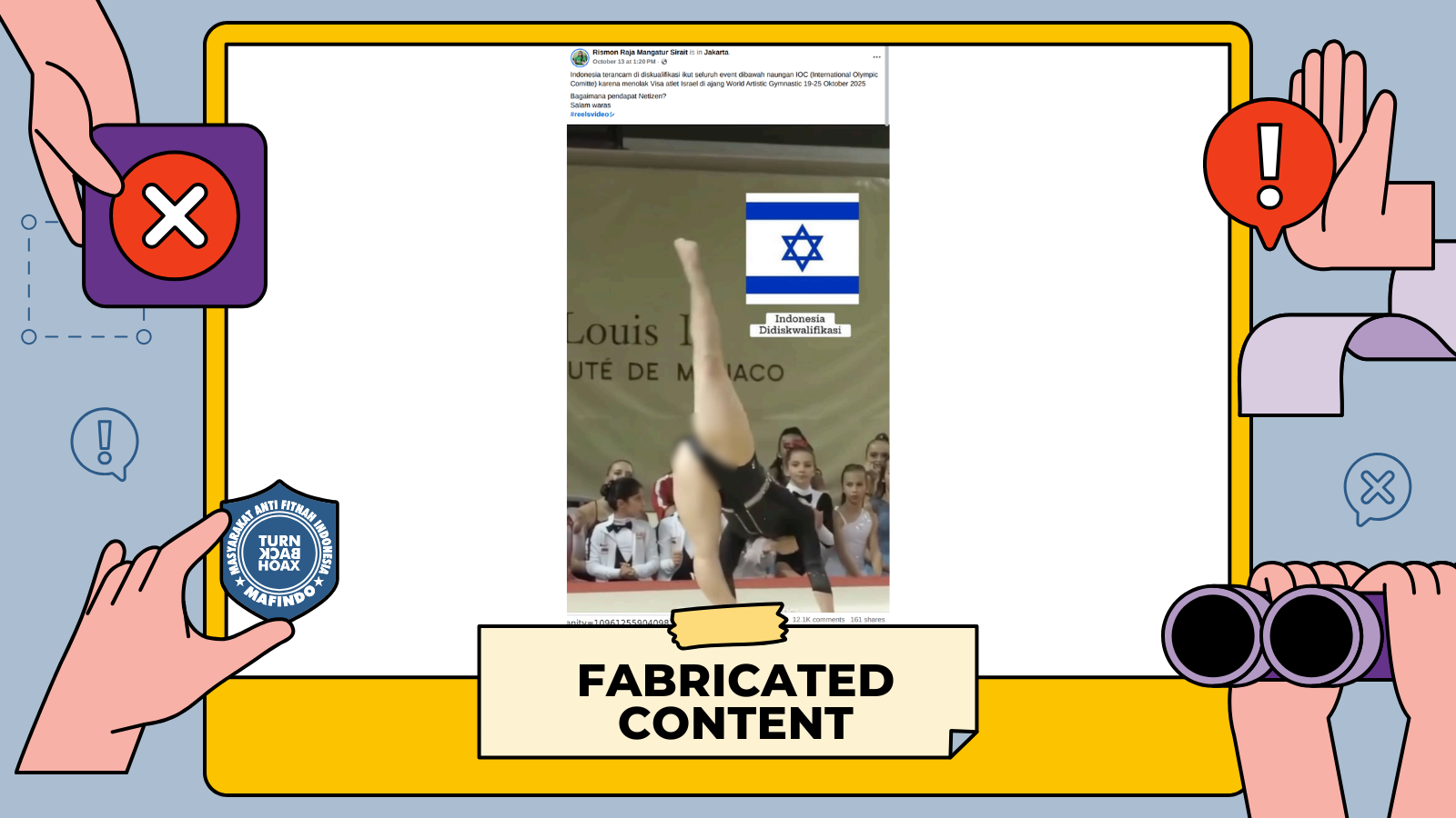 untuk membangun premis atau kesimpulan salah mengaitkan dengan sanksi oleh IOC (International Olympic Committee) atas respon Indonesia yang tidak memberikan visa kepada atlet senam Israel di Kejuaraan Dunia Senam Artistik 2025 di Jakarta.