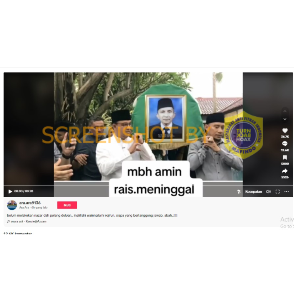 Beredar sebuah konten melalui platform Tiktok yang menarasikan Amien Rais meninggal dunia. Konten tersebut diunggah pada 20 Februari 2024 oleh akun @ara.ara9136