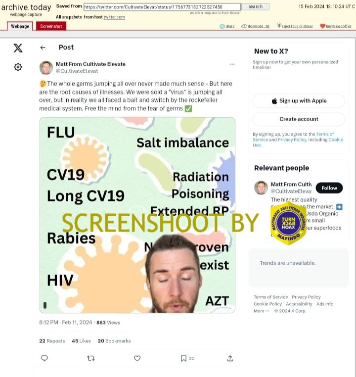 Dengan demikian, informasi yang disebarkan oleh @CultivateElevat (Matt From Cultivate Elevate) merupakan konten yang menyesatkan.