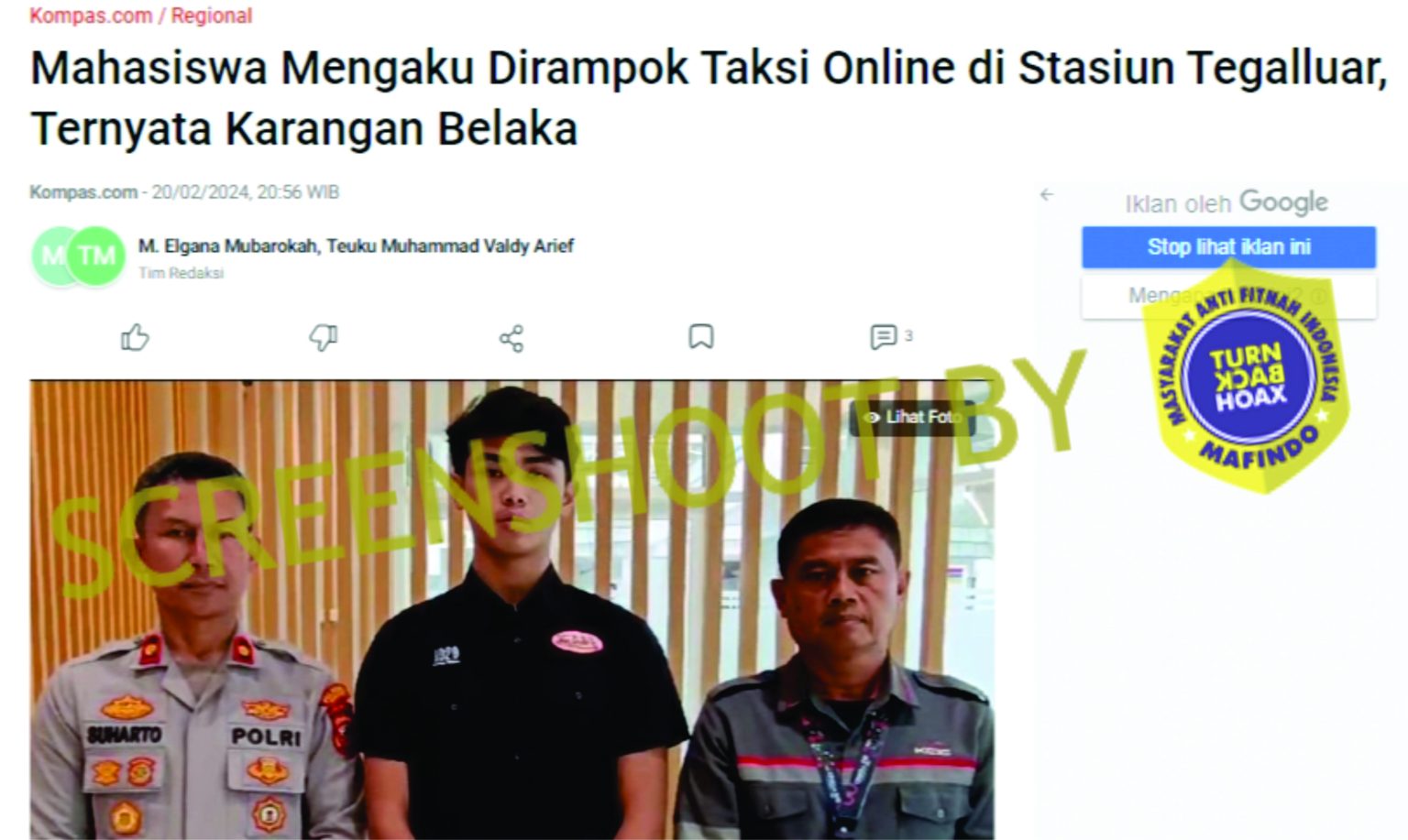 Namun setelah dilakukan pencarian fakta, melansir dari artikel kompas.com yang berjudul “Mahasiswa Mengaku Dirampok Taksi Online di Stasiun Tegalluar, Ternyata Karangan Belaka” dalam artikel tersebut Kepala Satuan Reserse Kriminal Kepolisian Resor Bandung Kompol Oliestha Ageng Wicaksono menjelaskan jika berita yang beredar tersebut tidak benar.