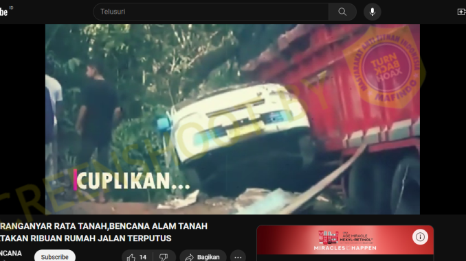 Setelah menonton keseluruhan video, faktanya narator hanya membaca ulang artikel berjudul “Akses Jalan Karanganyar – Lebakbarang Terputus Akibat Longsor”.