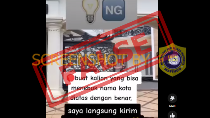 Di video tersebut terdapat narasi: “buat kalian yang bisa menebak nama kota diatas dengan benar. saya langsung kirim 35jt bagi yang bisa”