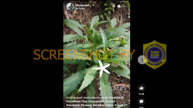 Berdasarkan hasil penelusuran, adanya video yang memperlihatkan tanaman dengan bunga berwarna putih dengan klaim bahwa daun dari tanaman itu adalah bat yang ampuh untuk menyembuhkan katarak merupakan klaim yang menyesatkan.