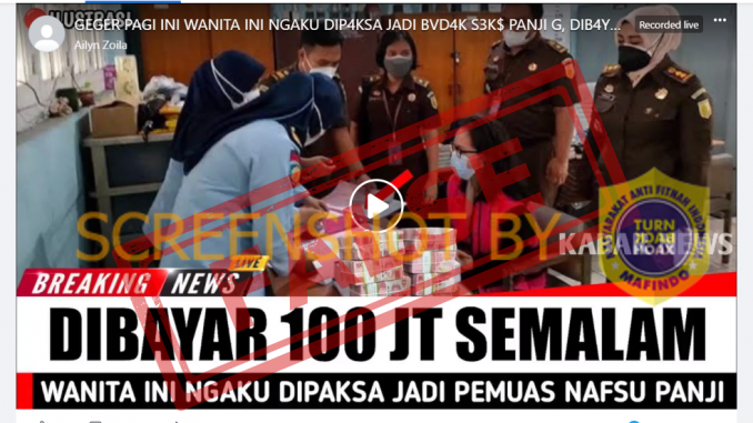 Berdasarkan hasil penelusuran, adanya video yang terdapat foto seorang wanita yang mengenakan rompi dengan tumpukan uang di hadapannya dengan klaim bahwa wanita itu dipaksa menjadi budak seks Panji Gumilang dengan bayaran Rp100 juta permalam merupakan konten yang dimanipulasi.
