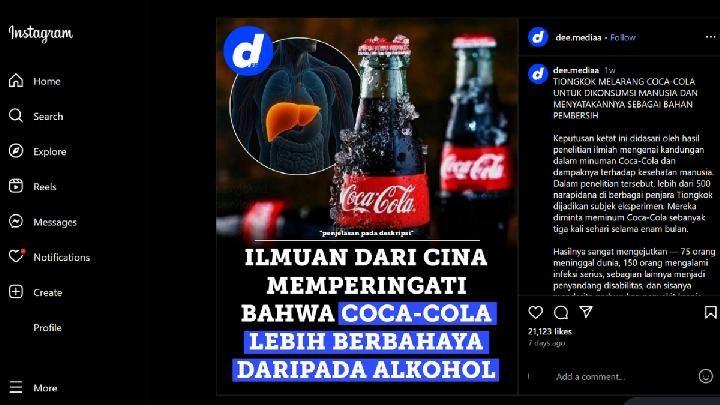 (GFD-2025-29658) Menyesatkan: Coca-Cola Lebih Berbahaya daripada Alkohol