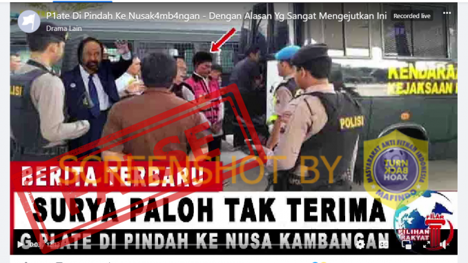Berdasarkan hasil penelusuran, adanya video yang menampilkan foto tersangka kasus korupsi proyek BTS Kominfo, Johnny G. Plate yang tampak masuk ke kendaraan tahanan Kejaksaan yang diklaim bahwa Johnny Plate dipindahkan ke Nusakambangan merupakan konten yang dimanipulasi.