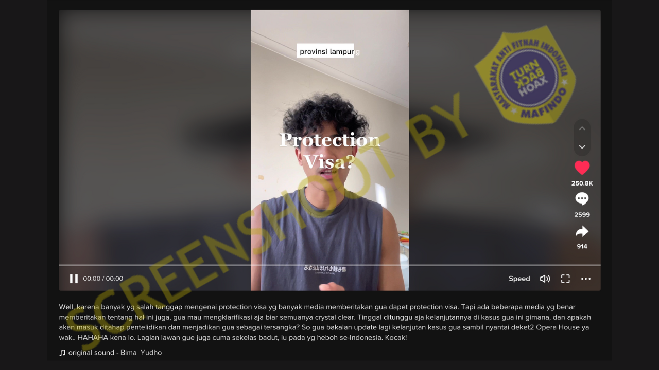“An Indonesian student in Australia, Bima Yudho, through his TikTok account, Awbimax Reborn, criticized the city of Lampung with his presentation content ‘Alasan Lampung Nggak Maju-maju.’ In the aftermath, Bima was reported to the police by an activist, who is also an advocate. This later made Bima get a Protection Visa from Australia, which can now protect him. A Protection Visa allows the owner to settle in Australia permanently. What do you think? :thinking_face::thinking_face:”