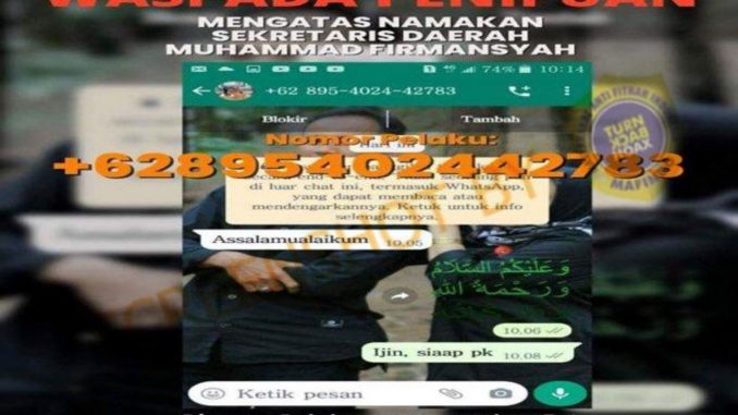 Beredar akun WhatsApp mengatasnamakan Sekretaris Daerah Karimun, Muhammad Firmansyah dengan nomor +62895-4024-42783. Akun tersebut memakai nama dan foto profil Muhammad Firmansyah mengenakan seragam dinasnya.