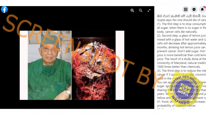 Postingan di Facebook membagikan informasi terkait cara untuk mematikan sel kanker dalam tubuh dengan diet gula serta mengonsumsi minyak kelapa dan mengonsumsi air lemon panas.