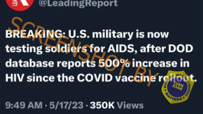Beredar informasi yang mengklaim bahwa Militer Amerika Serikat sedang menguji penyakit AIDS pada pasukan tentaranya dan database DoD (Departemen of Defense) menyebut bahwa peningkatan HIV sebesar 500% sejak peluncuran vaksin Covid-19.