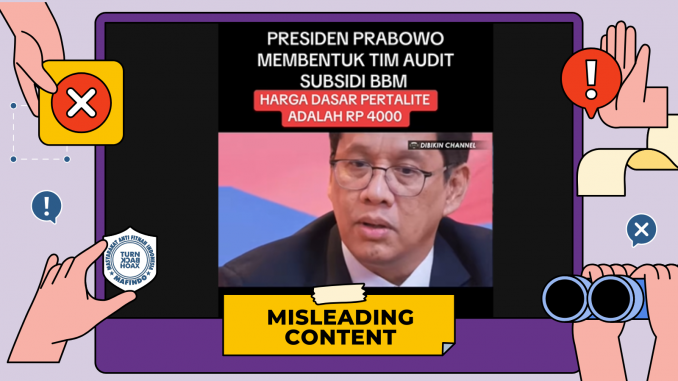 Unggahan berisi klaim “Presiden Prabowo bentuk tim audit subsidi BBM” itu merupakan konten yang menyesatkan (misleading content).