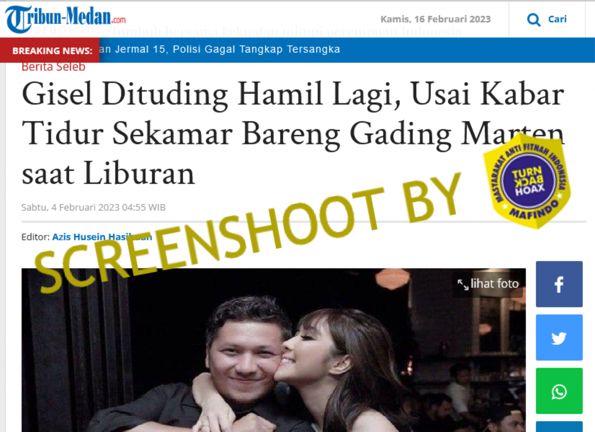 Alih-alih memberikan penjelasan yang benar sesuai pada klaim yang diberikan, video tersebut justru hanya membacakan artikel yang diunggah di tribunnews.com berjudul “Gisel Dituding Hamil Lagi, Usai Kabar Tidur Sekamar Bareng Gading Marten saat Liburan”