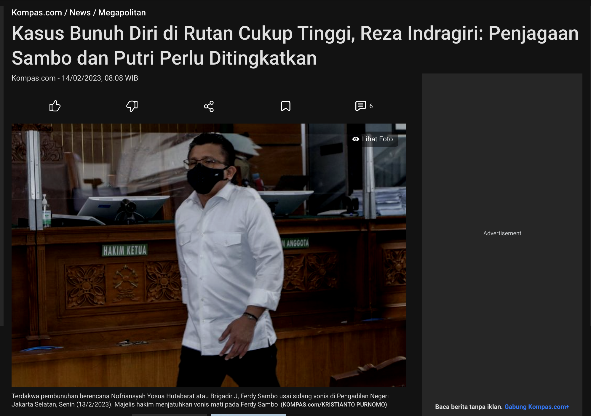 Melansir Kompas, dalam sidang putusan di Pengadilan Negeri Jakarta Selatan, majelis hakim memvonis Sambo dengan hukuman mati. Sedangkan, Putri divonis 20 tahun kurungan penjara. Berdasarkan hal itu, Reza mengkhawatirkan kejiwaan Sambo dan Putri terguncang dan akan berakibat fatal bagi hidup mereka. Oleh karenanya, ia menyarankan pihak rutan untuk memberikan penjagaan ekstra terhadap kedua terdakwa tersebut.
