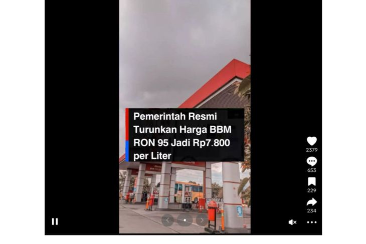 (GFD-2025-29318) Cek fakta, Pemerintah Indonesia turunkan harga BBM RON 95 jadi Rp7800 per liter